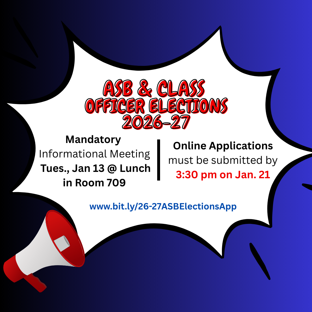 February 12 - Thursday – Election results will be announced at LUNCH in the ASB office. Runoff elections if necessary will take place at this time. MANDATORY meeting